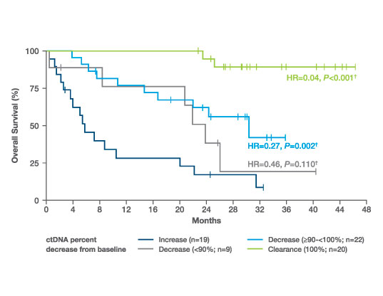 - ctDNA deep decrease (>90%) and clearance were associated with significantly improved OS4