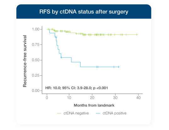 - 98% of patients testing ctDNA-negative did not recur through follow-up3