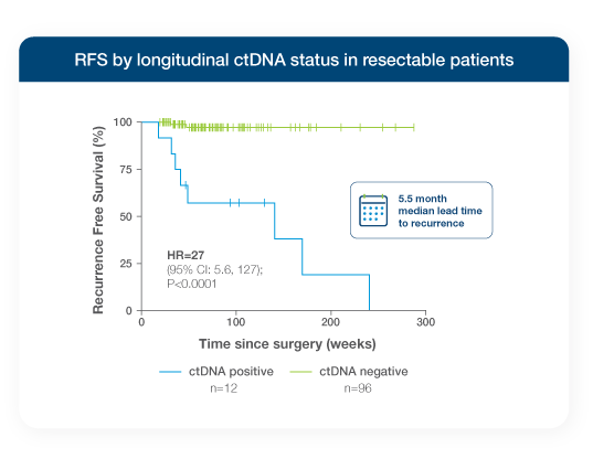 Signatera™ detected recurrence a median of >5 months earlier than standard imaging across resectable and unresectable disease2,3